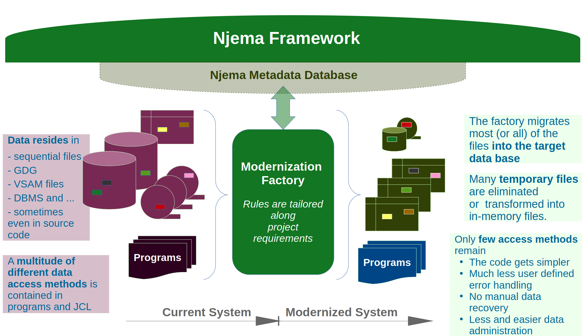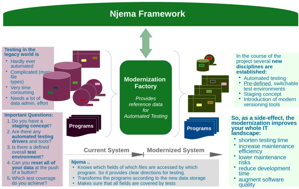 Zugriffe, die bisher vielleicht auf eine klassische Datei gingen, können so im Rahmen der Modernisierung in einen Zugriff auf eine Datenbank oder eine In-Memory Datei umgeformt werden. Auch bei der Selektion von Testdaten und -szenarien sind diese Metadaten von Nutzen.
