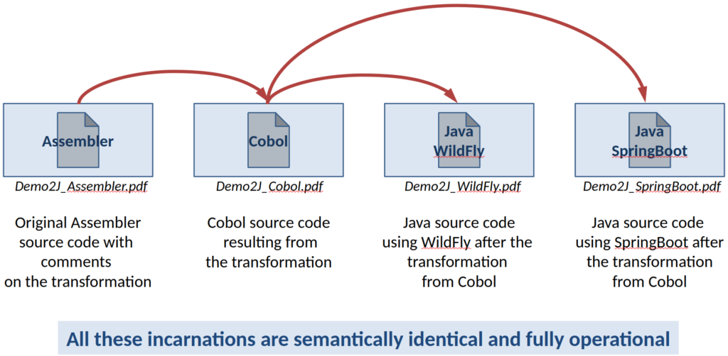 Wir zeigen anhand eines Demoprogramms, wie aus einem Assembler Programm automatisiert Cobol und zwei davon abgeleitete Java-Varianten entstehen.